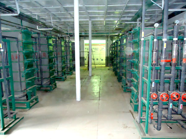用電滲析法將苦咸水或海水淡化,脫鹽成本與含鹽量有密切關(guān)系。有人認(rèn)為電滲析法淡化成本與處理水的含鹽量的0.6 次冪成正比。電滲析脫鹽的最佳濃度范圍是幾百至幾mg.L-1 ,苦咸水大多在此范圍,而海水含鹽量則是苦咸水的10~20倍。含鹽量為幾百mg.L-1的原水制取純水,一般采用離子交換法。若鹽水濃度太高,則適合用電滲析法做離子交換的前處理。先脫除原水中的大部分鹽分,減輕離子交換的負(fù)擔(dān),延長其使用周期,在制取高純水時(shí)把兩者結(jié)合起來使用,往往會(huì)產(chǎn)生很好的技術(shù)效果和經(jīng)濟(jì)效果。電滲析技術(shù)還廣泛應(yīng)用于濃縮海水制鹽。日本國內(nèi)的制鹽基本上都是用電滲析法,此方法與傳統(tǒng)鹽田法制鹽相比有許多優(yōu)點(diǎn),如占地面積小,投資少,不受外界環(huán)境影響,易于實(shí)現(xiàn)自動(dòng)化。我國在西南地區(qū)采用電滲析法將鹽泉鹵水制鹽,使NaCl 的含量穩(wěn)定提高到120 g.L-1 ,與原來采用的單純熬鹽法相比,產(chǎn)量增加而成本降低。