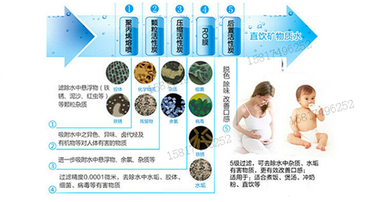 輔助配件:原裝的5微米20寸棉1只+20寸顆粒濾芯1只+1微米20寸棉芯1只+RO反滲透膜+后置椰殼  濾芯1只+飲水龍頭1個