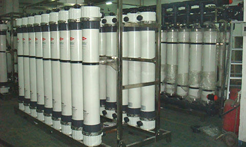 原水(設(shè)有壓力保護)→增壓泵(一用一備)→砂過濾器→炭過濾器→硬化器(根據(jù)地區(qū)不合選用)→緊密過濾器(或稱保安過濾器)→兩頭水箱→RO前水泵→緊密過濾器(或稱保安過濾器)→RO高壓泵→RO反滲透系統(tǒng)→RO水箱→RO水增壓泵→終端緊密過濾→設(shè)備用水(水質(zhì)可以達到5-10μs/ ㎝以下,25 ℃)